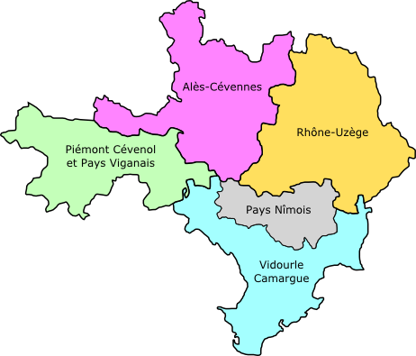 Alès-Cévennes Rhône-Uzège Pays Nîmois Vidourle-Camargue Piémont Cévenol et Pays Viganais